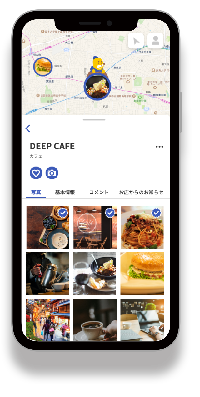 DeepLoでは現在地情報から様々なお店やスポットが表示されます。